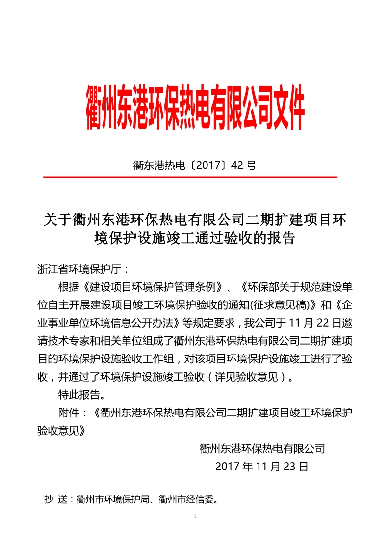 衢州東港環(huán)保熱電有限公司二期擴(kuò)建項(xiàng)目竣工環(huán)保驗(yàn)收報(bào)告 發(fā)布日期:2017-12-21 瀏覽次數(shù): 5844 點(diǎn)擊下載:衢州東港環(huán)保熱電有限公司二期擴(kuò)建項(xiàng)目竣工環(huán)保驗(yàn)收報(bào)告