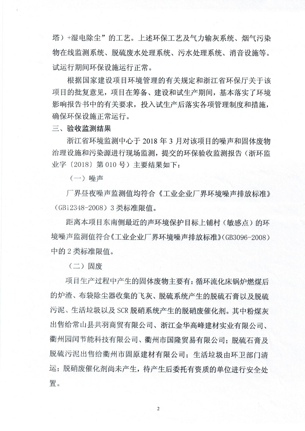 衢州東港熱電有限公司二期擴建項目噪聲、固廢驗收檢測結(jié)果公示