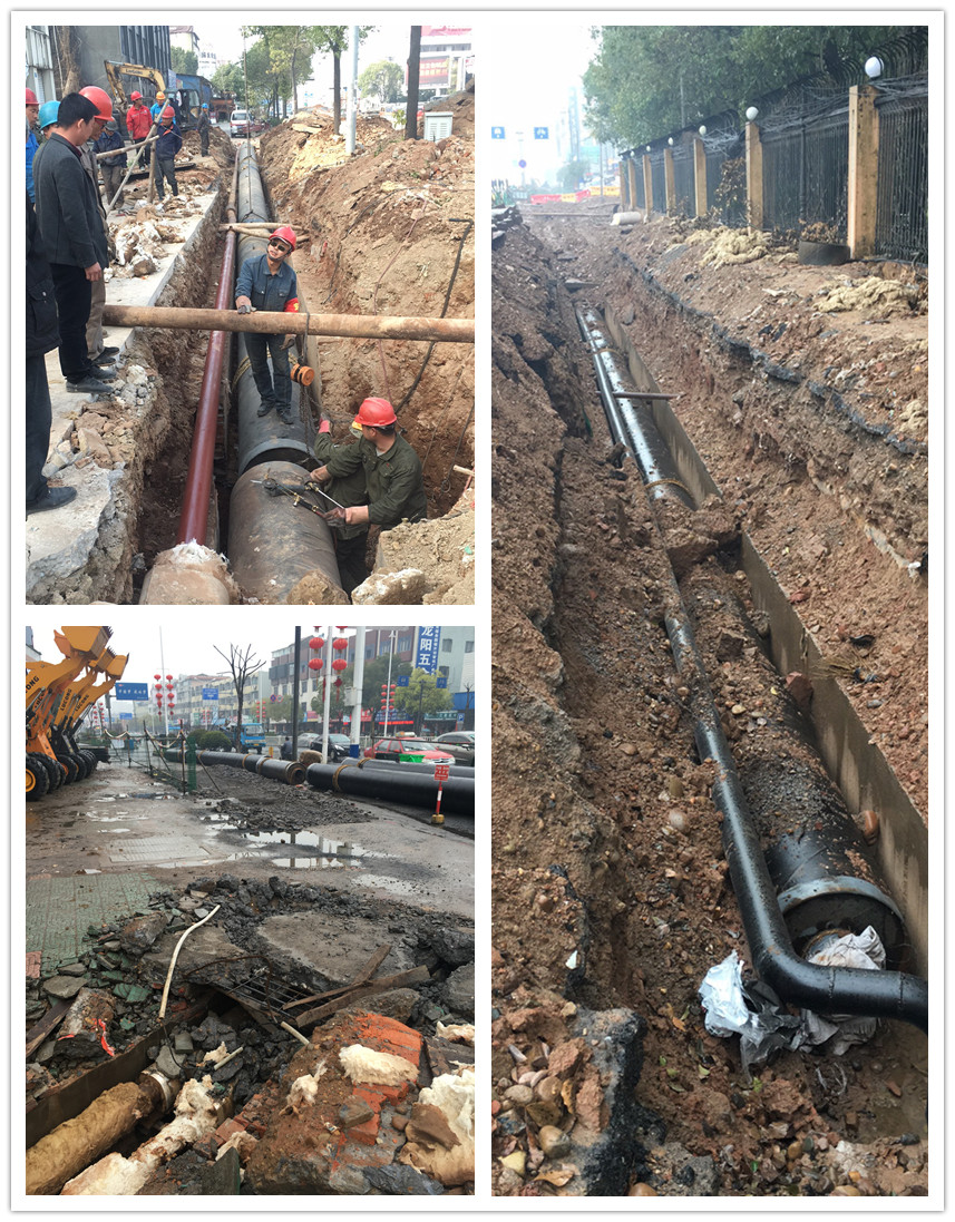 ?、偕蚣蚁生Q供熱管道B標(biāo)段完成濱港北路管溝開挖約200米,目前下管約160米。